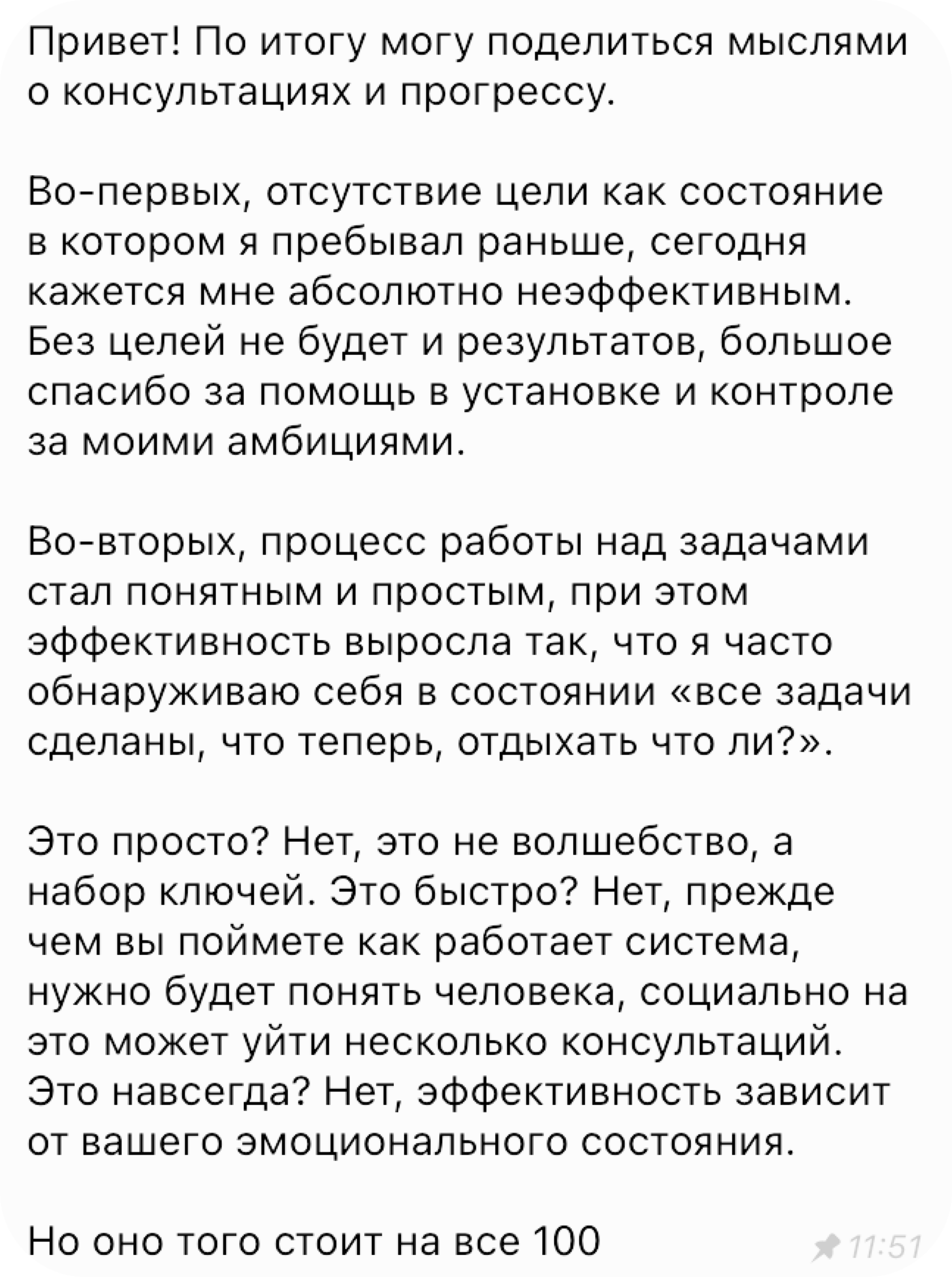 Возможно, проблема находится за пределами вашей личной эффективности. Мой рекомендация — попробовать. Для уверенности можете взглянуть на отзывы о консультациях: